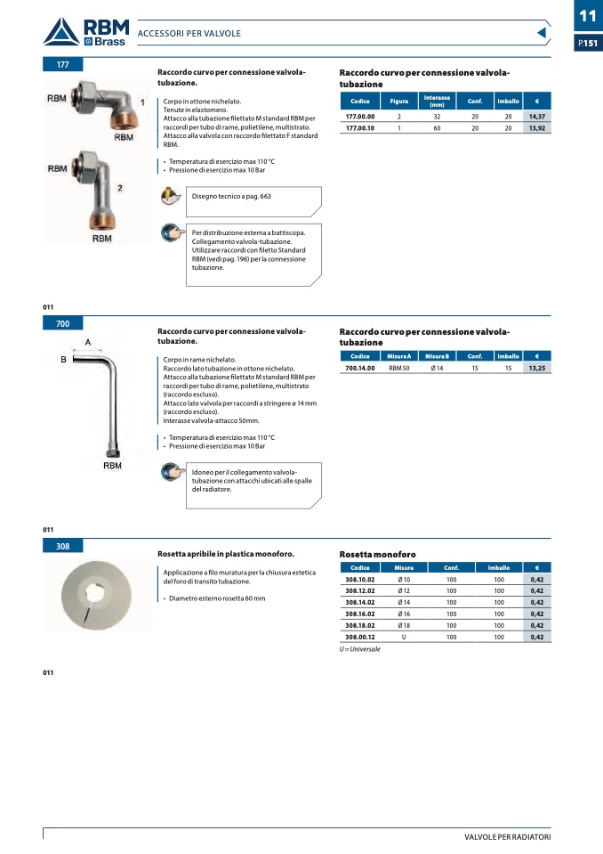 Attacco alla tubazione filettato M standard RBM per