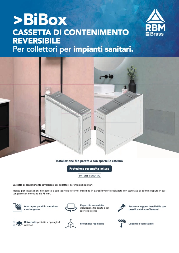 Cassetta di contenimento reversibile per collettori per impianti sanitari.