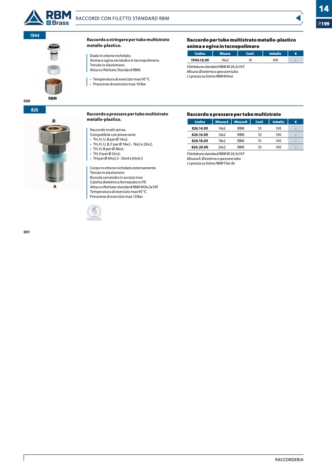 RACCORDI CON FILETTO STANDARD RBM
