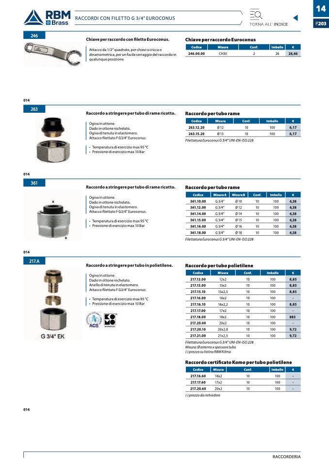 RACCORDI CON FILETTO G 3/4” EUROCONUS
