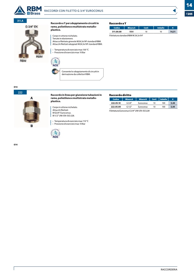 RACCORDI CON FILETTO G 3/4” EUROCONUS