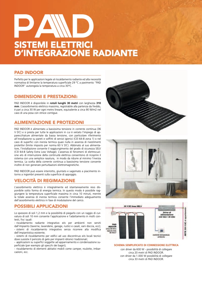 PAD INDOOR è alimentato a bassissima tensione in corrente continua (36