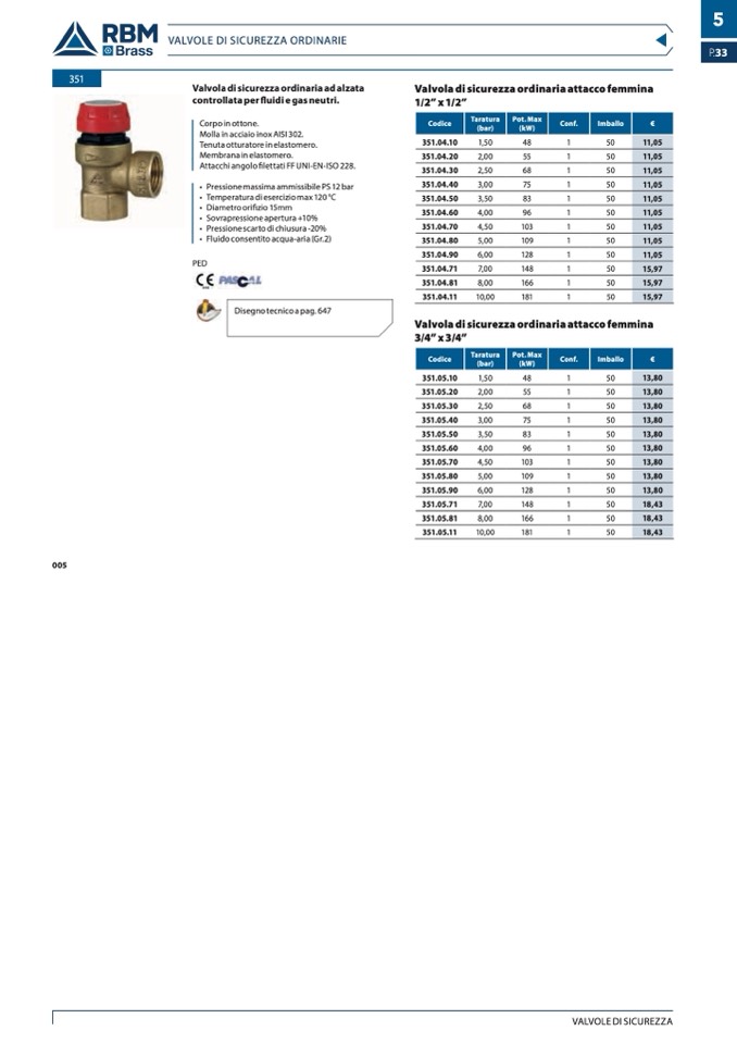 VALVOLE DI SICUREZZA ORDINARIE