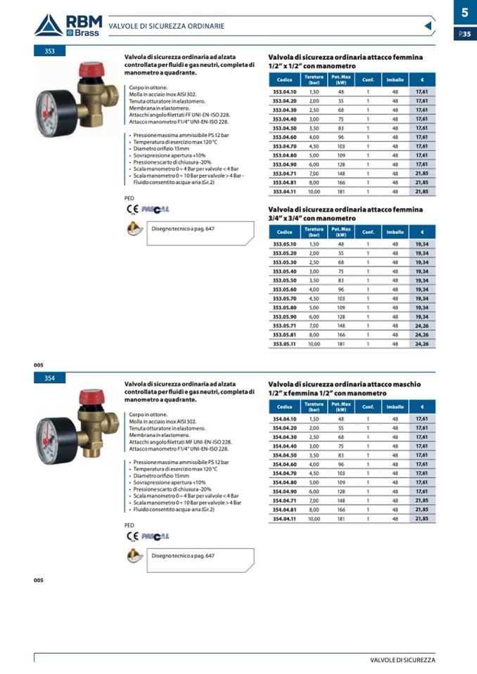 VALVOLE DI SICUREZZA ORDINARIE