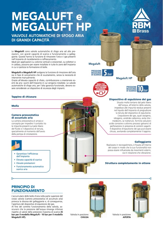 Le Megaluft sono valvole automatiche di sfogo aria ad alte pre-
