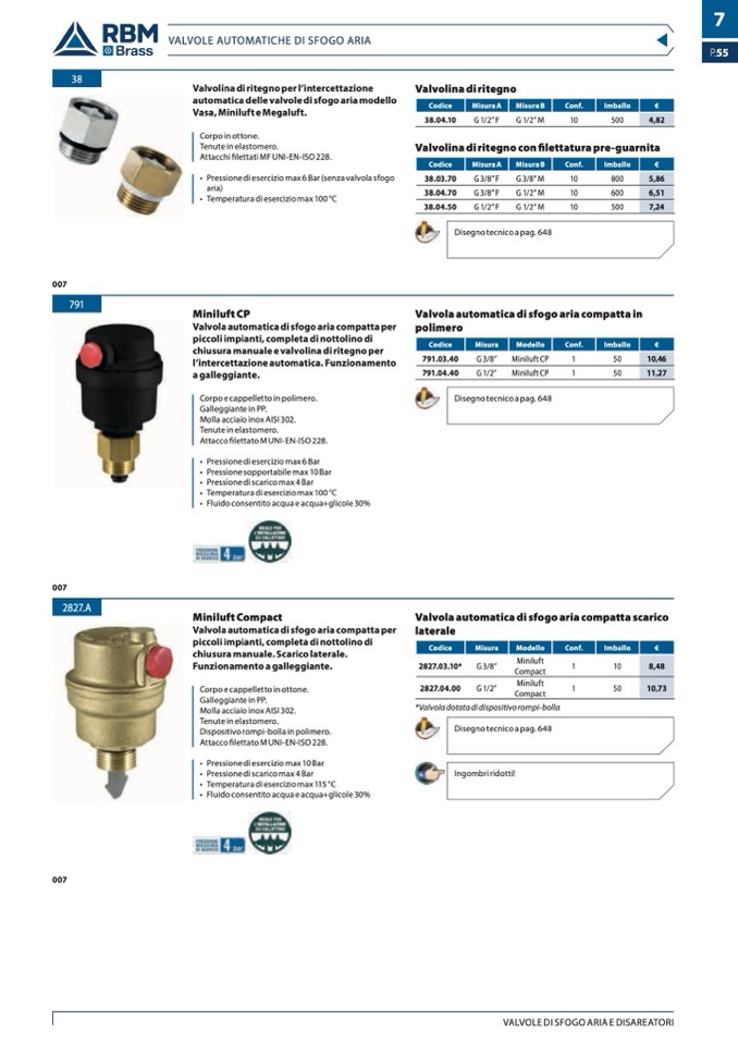 VALVOLE DI SFOGO ARIA E DISAREATORI