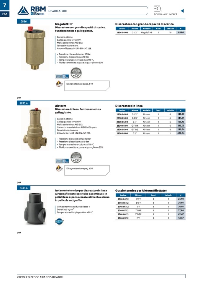 VALVOLE DI SFOGO ARIA E DISAREATORI