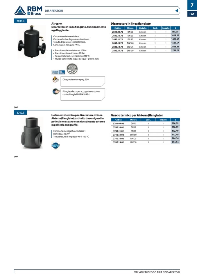VALVOLE DI SFOGO ARIA E DISAREATORI