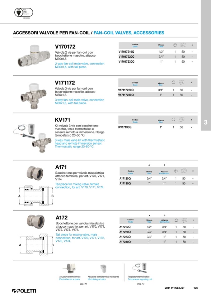 ACCESSORI VALVOLE PER FAN-COIL / FAN-COIL VALVES, ACCESSORIES