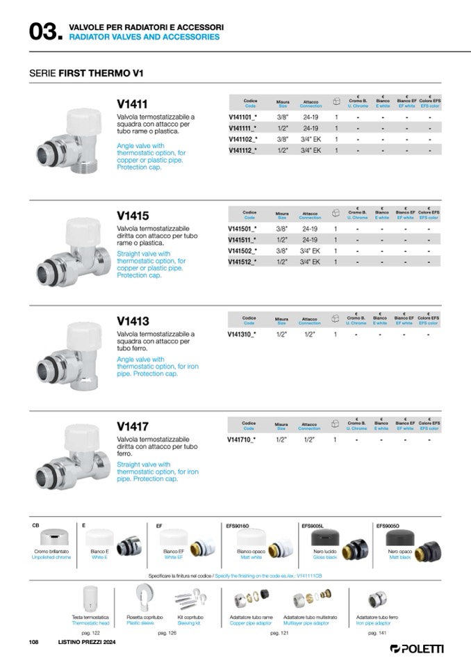 Specificare la finitura nel codice / Specify the finishing on the code es./ex.: V141111CB