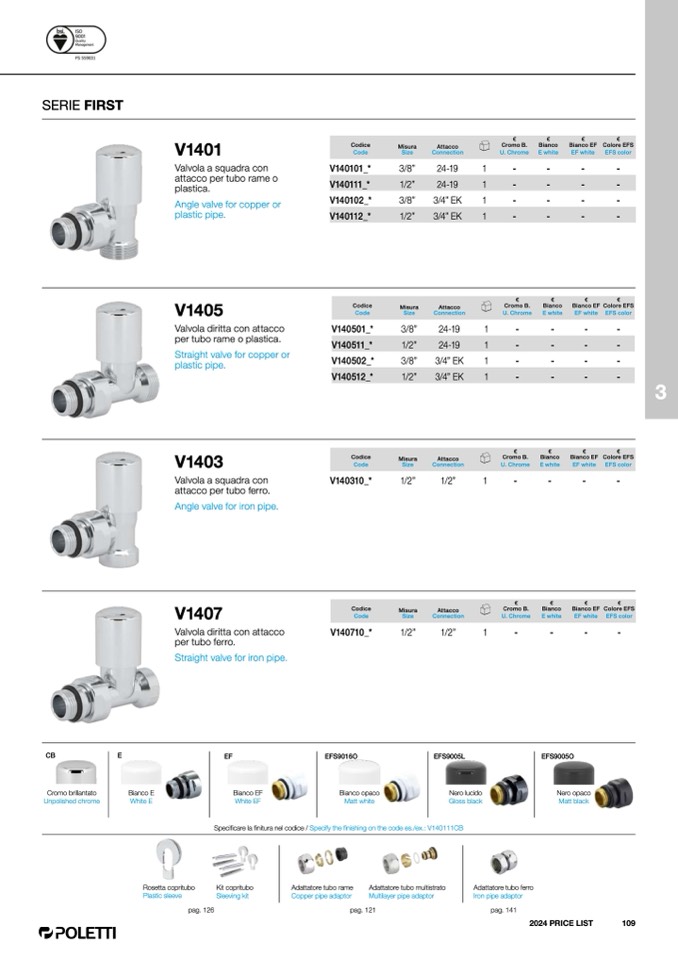 Specificare la finitura nel codice / Specify the finishing on the code es./ex.: V140111CB