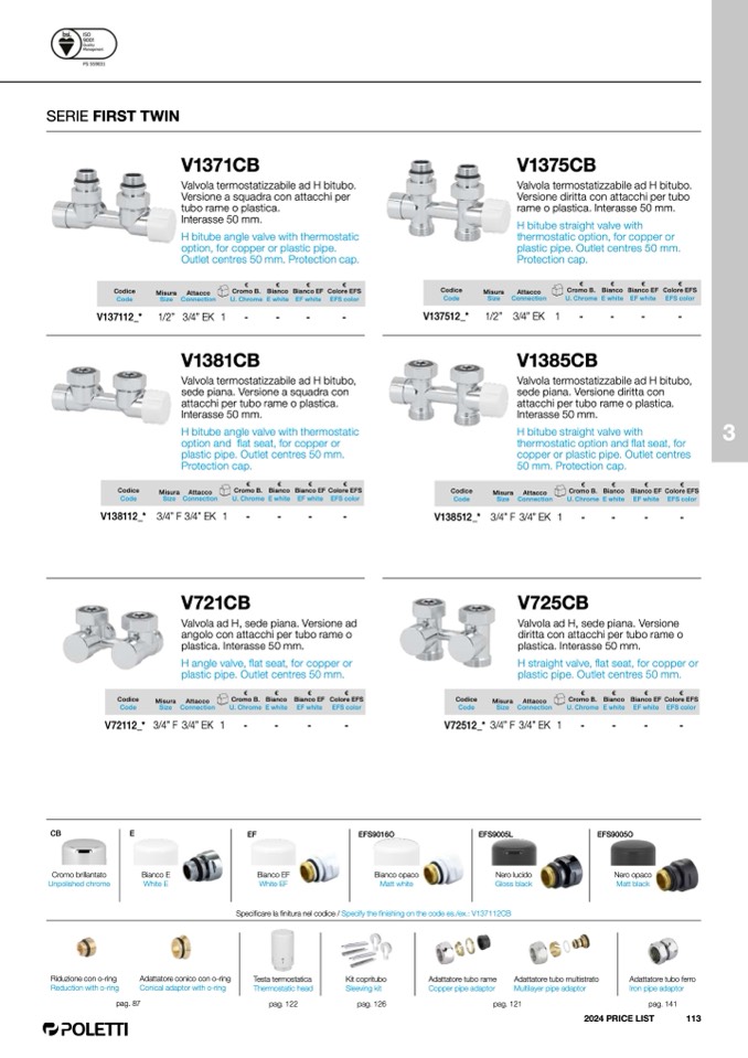 Specificare la finitura nel codice / Specify the finishing on the code es./ex.: V137112CB