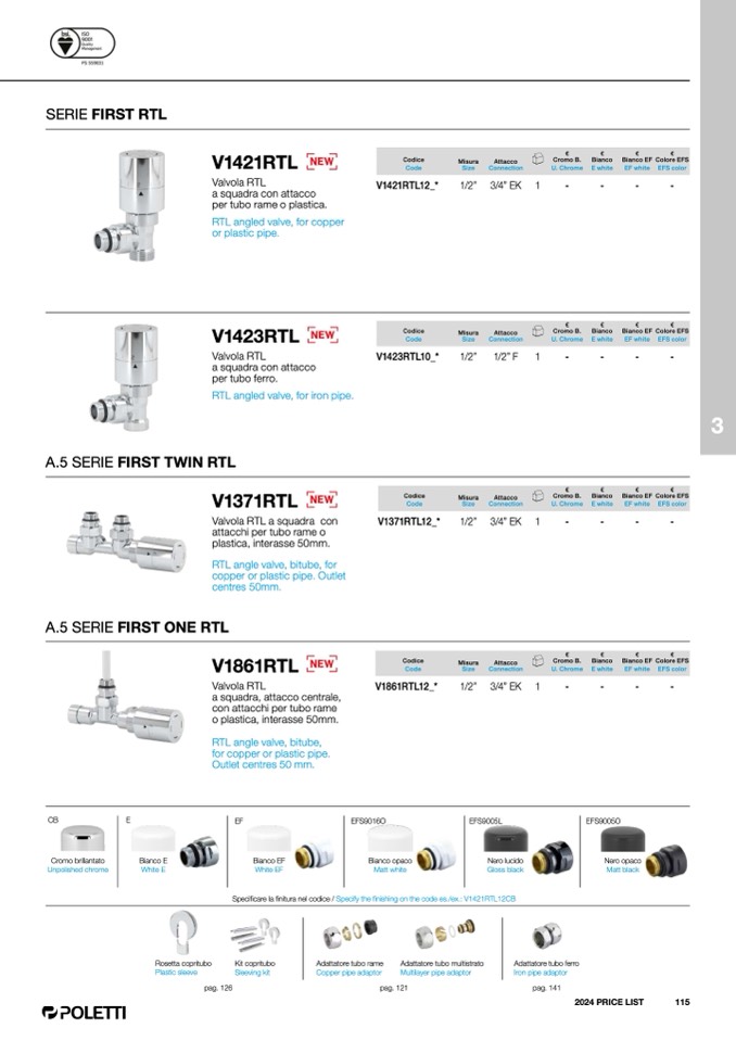 Specificare la finitura nel codice / Specify the finishing on the code es./ex.: V1421RTL12CB