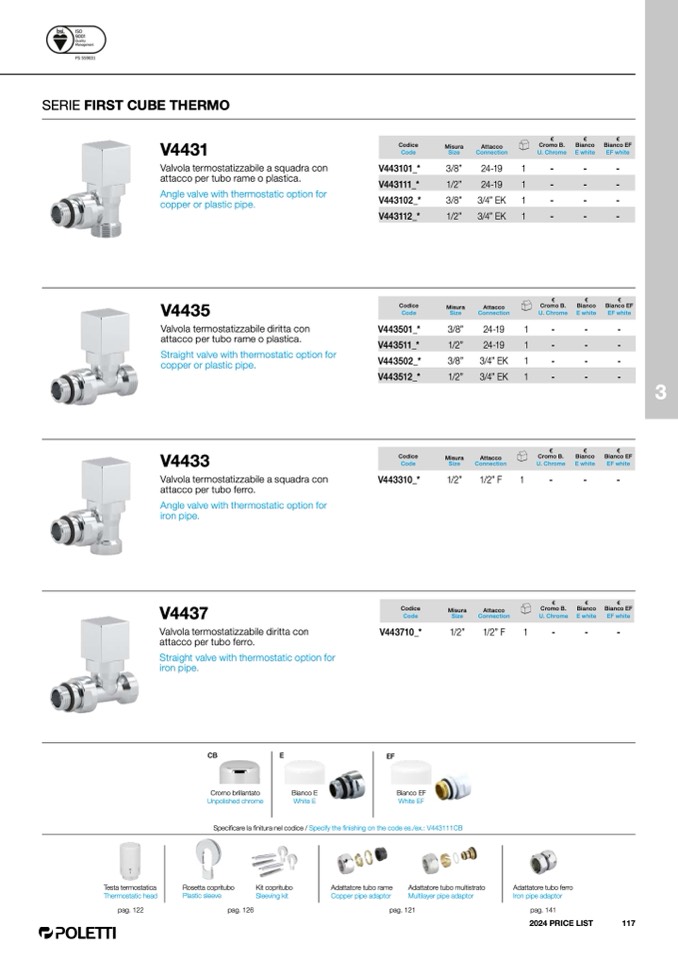 Specificare la finitura nel codice / Specify the finishing on the code es./ex.: V443111CB