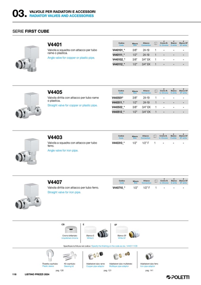 Specificare la finitura nel codice / Specify the finishing on the code es./ex.: V440111CB