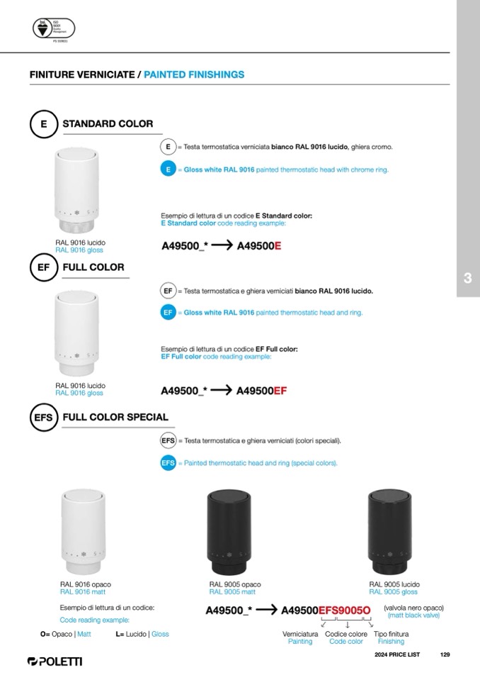 EFS = Painted thermostatic head and ring (special colors).