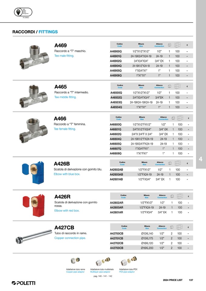 Adattatore tubo rame