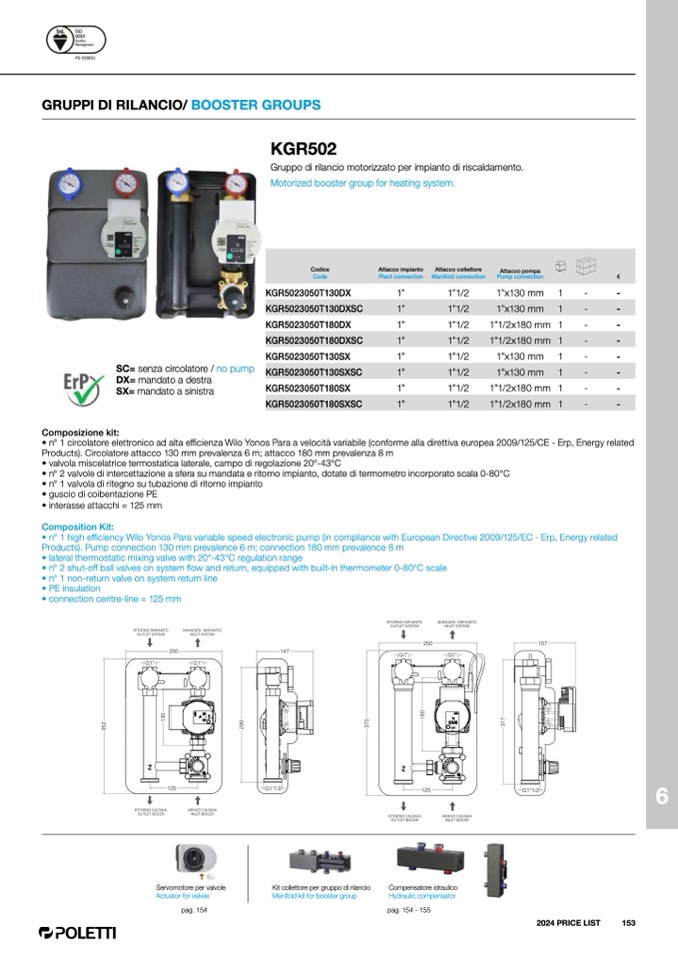 • n° 1 high efficiency Wilo Yonos Para variable speed electronic pump (in compliance with European Directive 2009/125/EC - Erp, Energy related