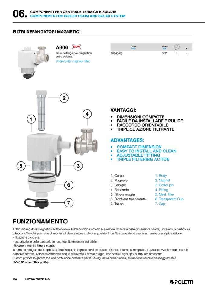Il filtro defangatore magnetico sotto caldaia A806 combina un’efficace azione filtrante a delle dimensioni ridotte, unite ad un particolare
