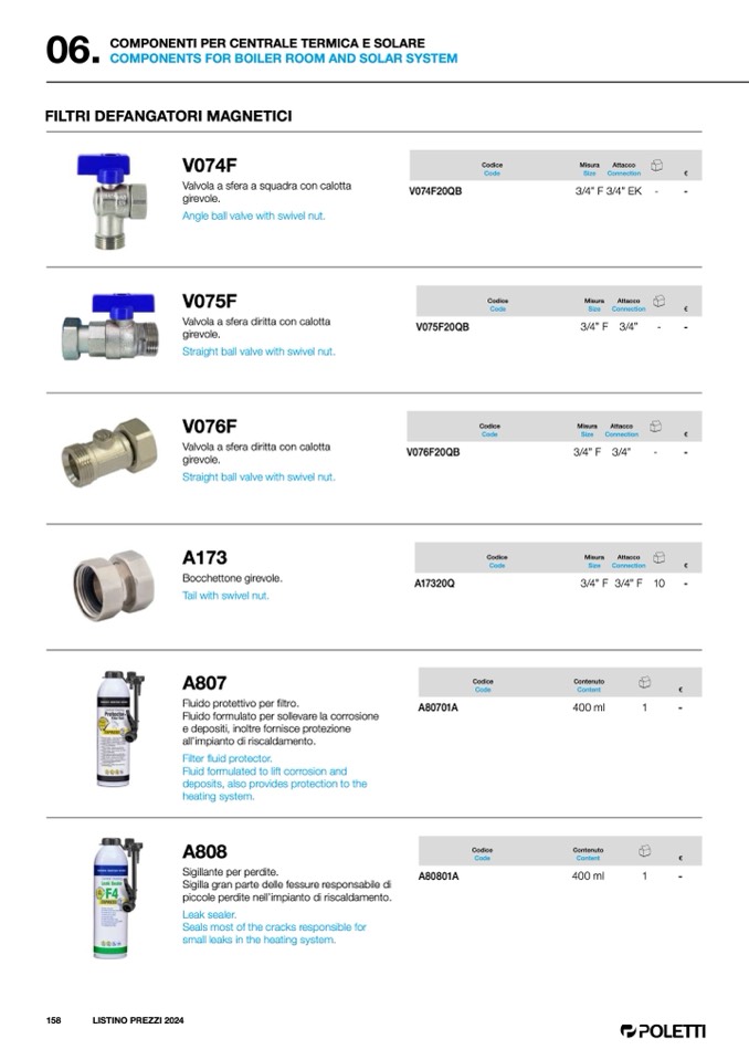 COMPONENTI PER CENTRALE TERMICA E SOLARE