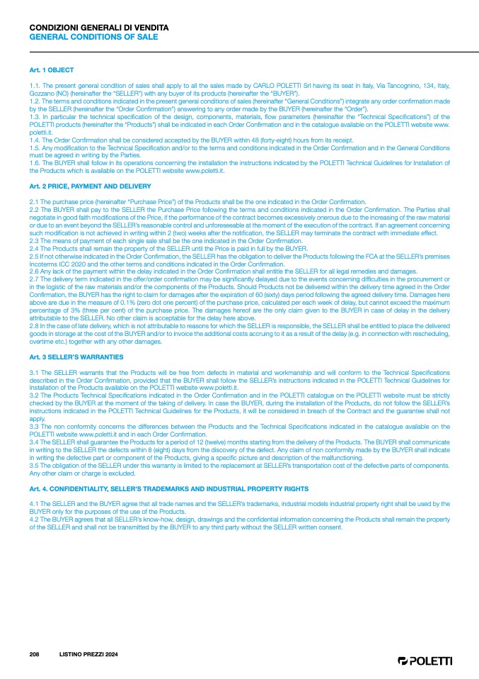 POLETTI website www.poletti.it and in each Order Confirmation.