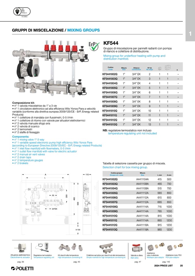 • n° 1 collettore di ritorno con valvole per attuatori elettrotermici