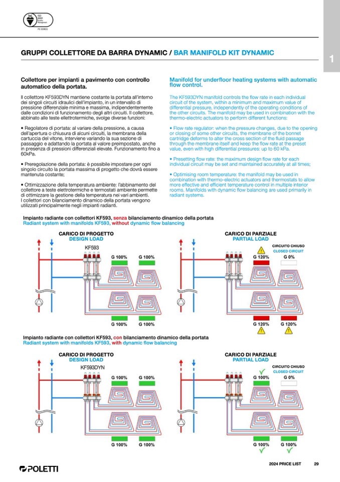 Radiant system with manifolds KF593, with dynamic flow balancing