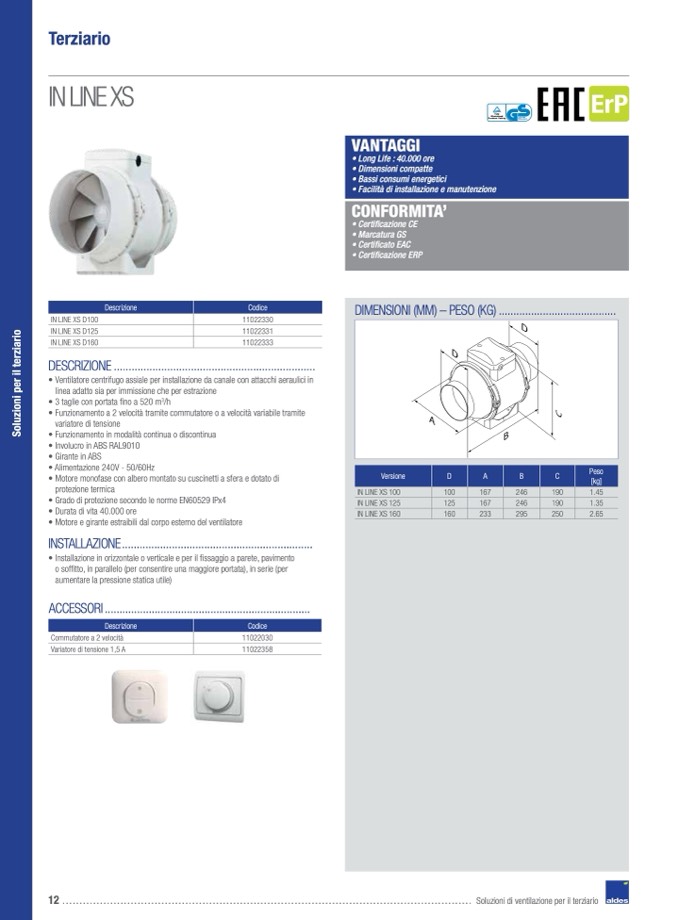 • Ventilatore centrifugo assiale per installazione da canale con attacchi aeraulici in