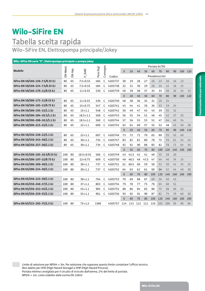 Limite di selezione per NPSHr = 5m. Per selezione che superano questo limite contattare l’ufcio tecnico.