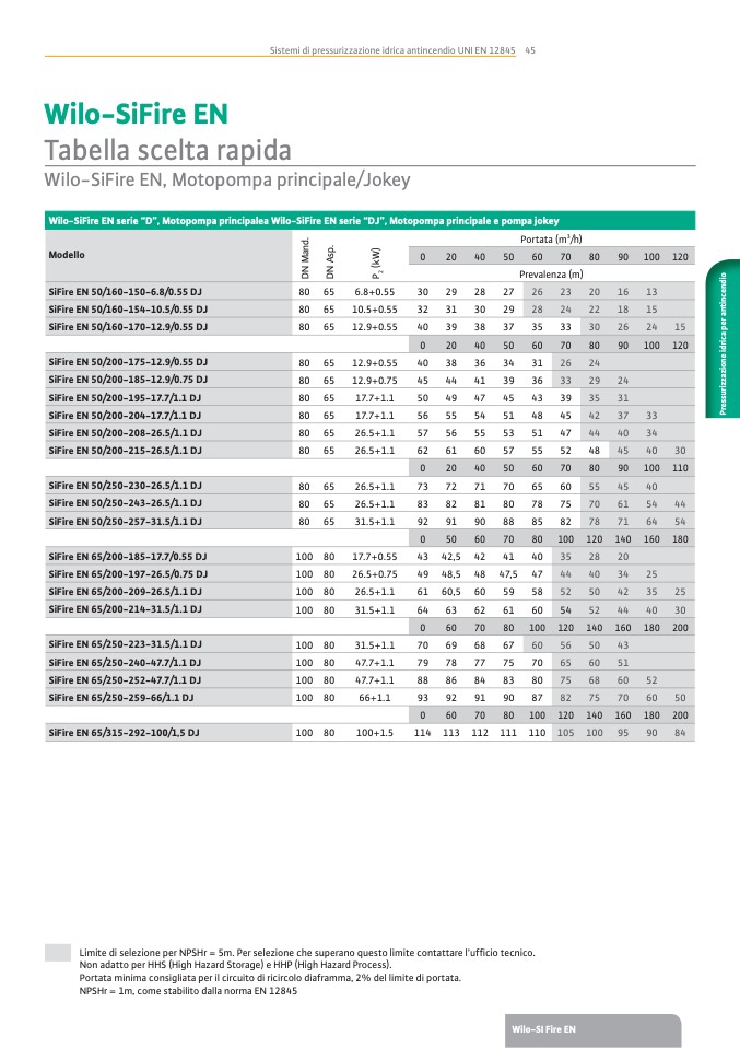 Limite di selezione per NPSHr = 5m. Per selezione che superano questo limite contattare l’ufcio tecnico.
