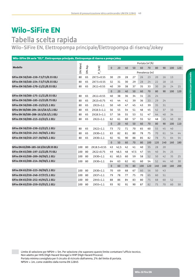 Limite di selezione per NPSHr = 5m. Per selezione che superano questo limite contattare l’ufcio tecnico.