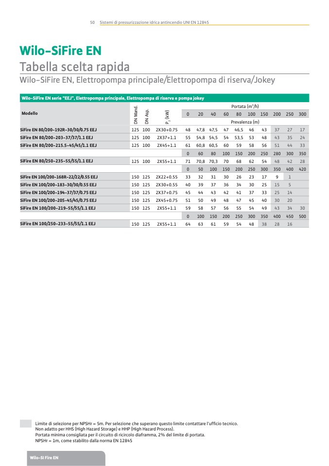 Limite di selezione per NPSHr = 5m. Per selezione che superano questo limite contattare l’ufcio tecnico.
