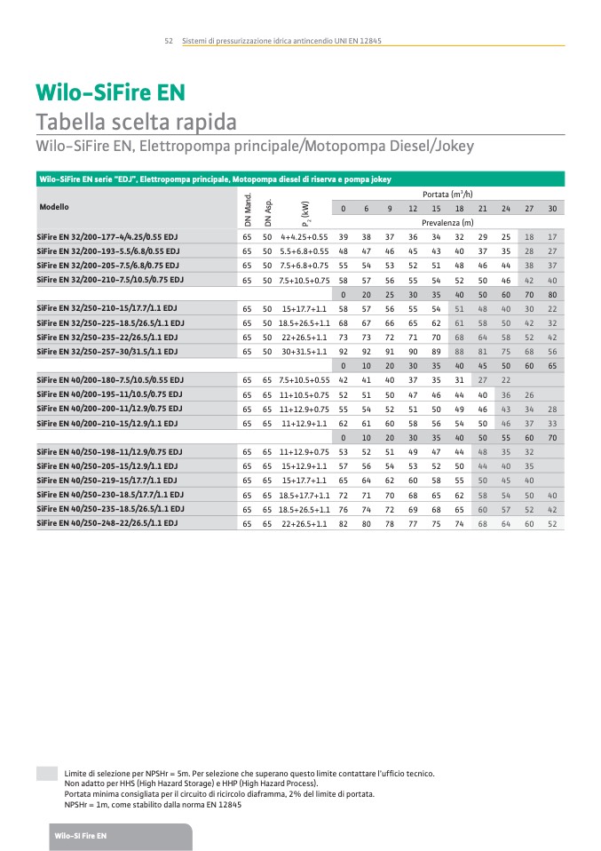 Limite di selezione per NPSHr = 5m. Per selezione che superano questo limite contattare l’ufcio tecnico.