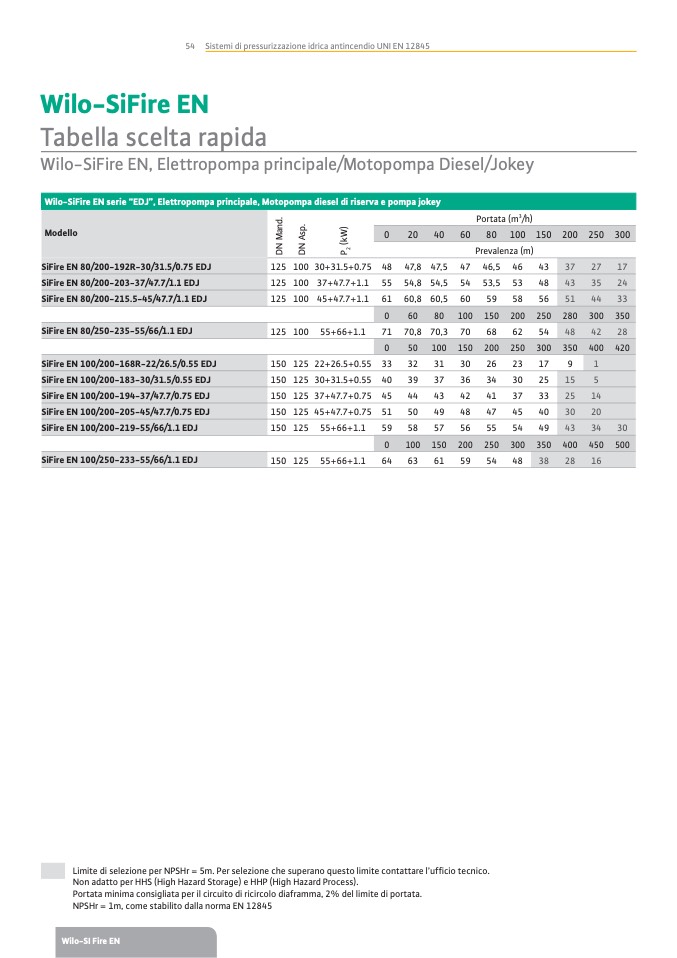 Limite di selezione per NPSHr = 5m. Per selezione che superano questo limite contattare l’ufcio tecnico.