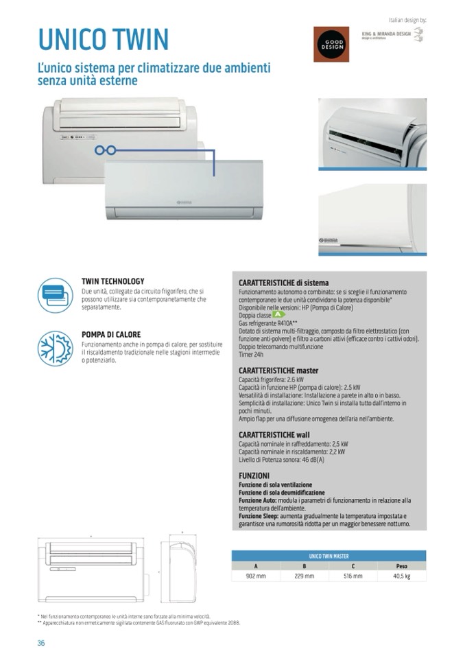 Due unità, collegate da circuito frigorifero, che si