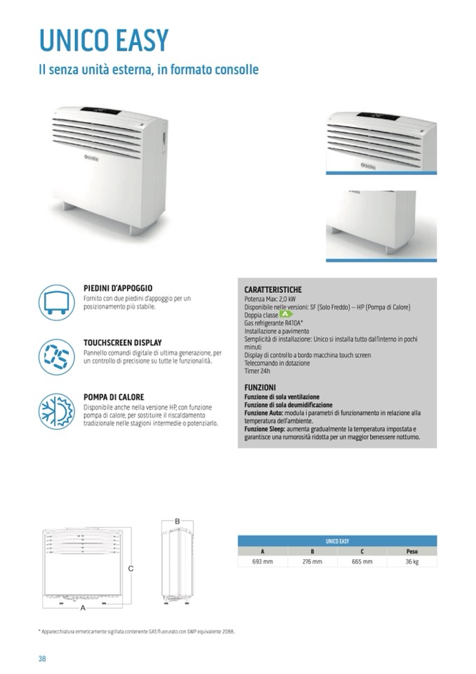 Disponibile nelle versioni: SF (Solo Freddo) – HP (Pompa di Calore)
