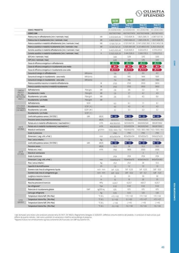 I dati dichiarati sono relativi alle condizioni previste nella EN 14511, EN 14825 e Regolamento Delegato UE 626/2011. L’effettivo consumo elettrico del prodotto, in condizioni di reale utilizzo, può