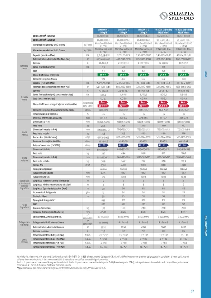 I dati dichiarati sono relativi alle condizioni previste nella EN 14511, EN 14825 e Regolamento Delegato UE 626/2011. L’effettivo consumo elettrico del prodotto, in condizioni di reale utilizzo, può
