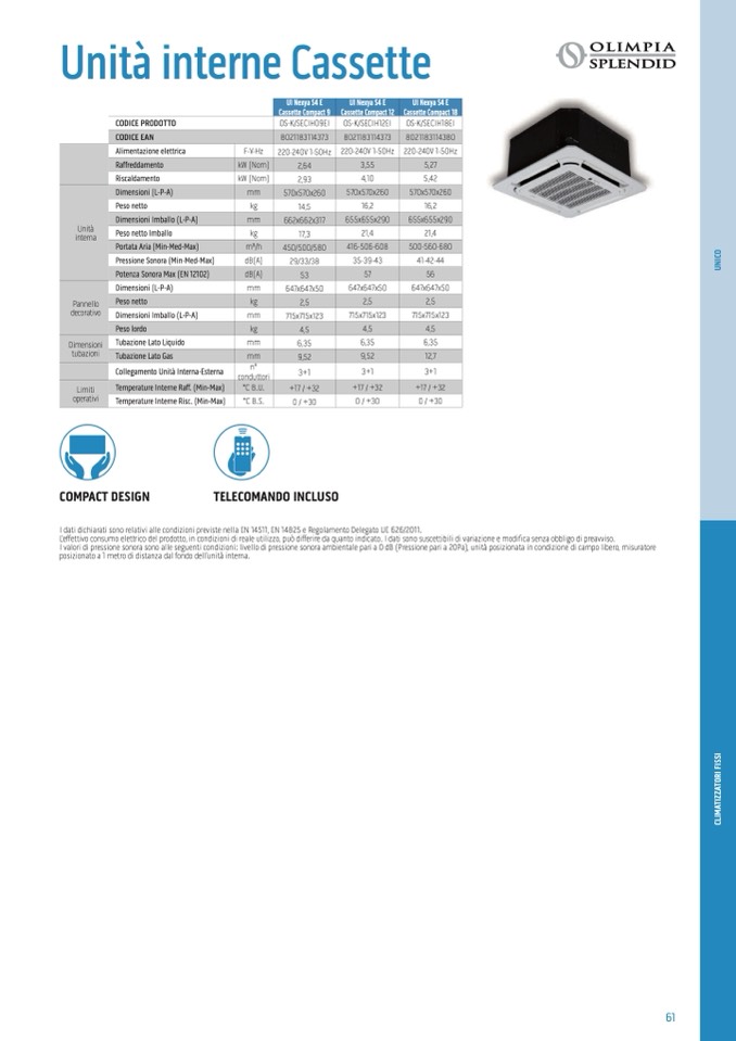I dati dichiarati sono relativi alle condizioni previste nella EN 14511, EN 14825 e Regolamento Delegato UE 626/2011.