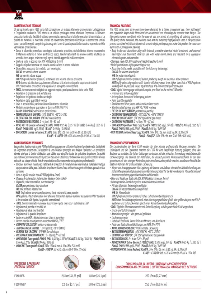 Die Lackierpistolen der Serie F160 wurden für eine absolut professionelle Nutzung konzipiert. Die