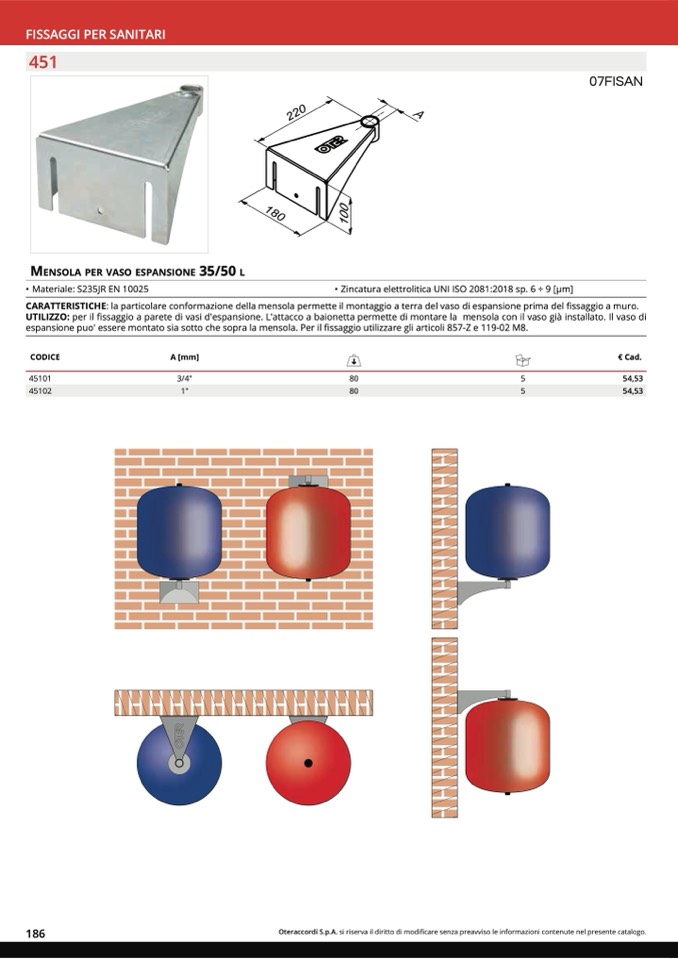 MENSOLA PER VASO ESPANSIONE 35/50 L