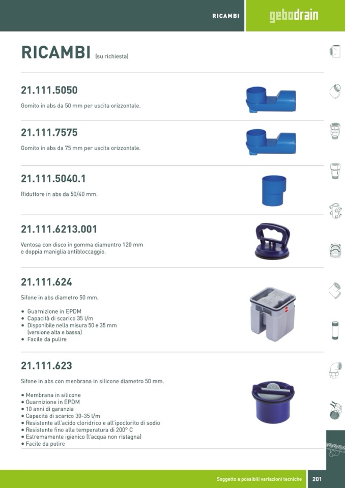 Sifone in abs con menbrana in silicone diametro 50 mm.
