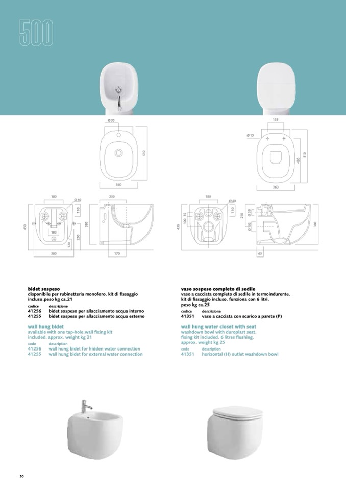 fixing kit included. 6 litres flushing.