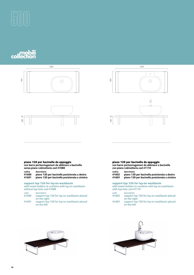 support top 120 for lay-on washbasin