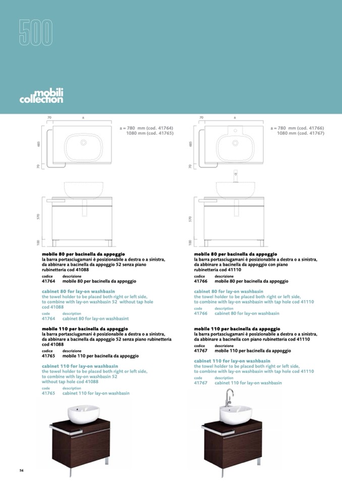 to combine with lay-on washbasin with tap hole cod 41110