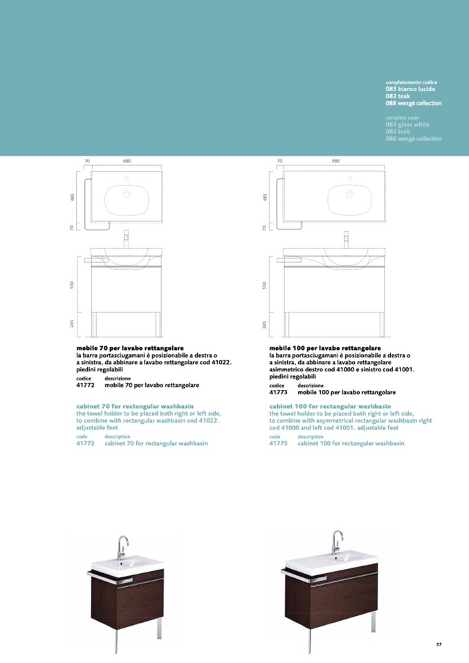 a sinistra, da abbinare a lavabo rettangolare cod 41022.