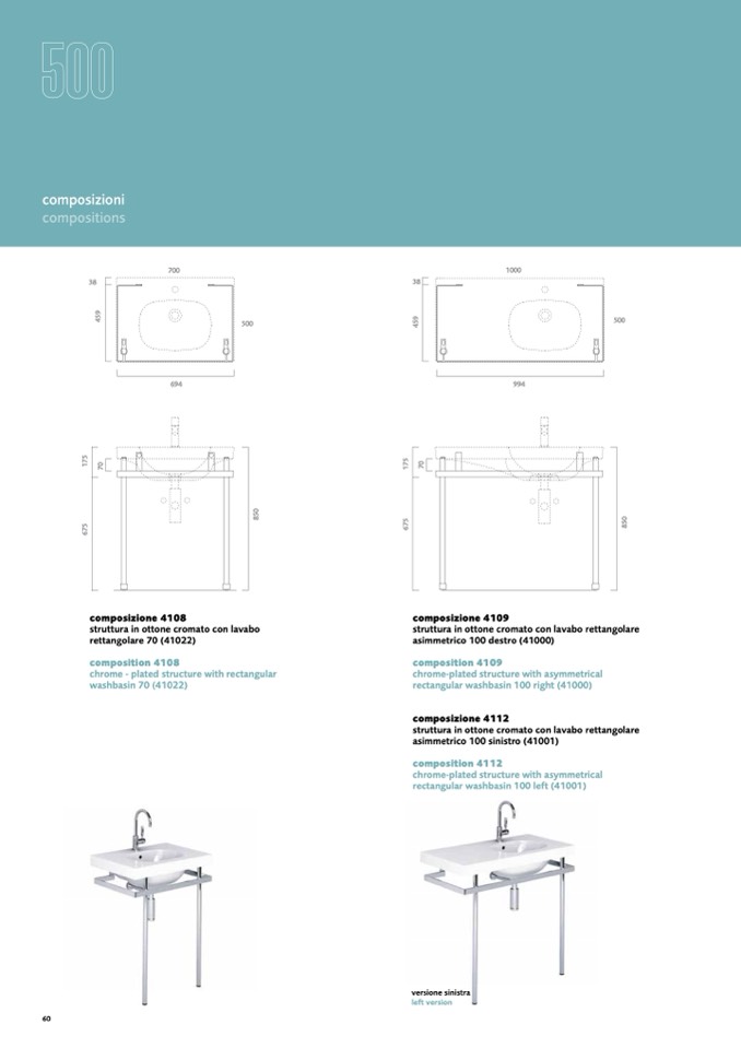 struttura in ottone cromato con lavabo rettangolare