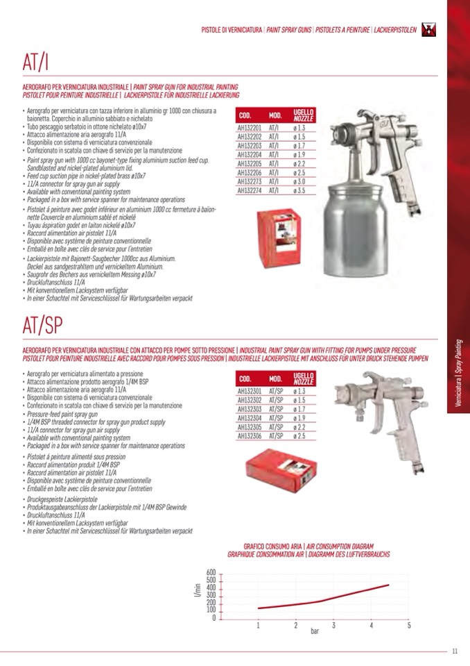 PISTOLE DI VERNICIATURA | PAINT SPRAY GUNS | PISTOLETS A PEINTURE | LACKIERPISTOLEN
