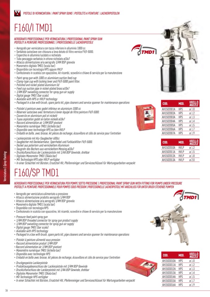PISTOLE DI VERNICIATURA | PAINT SPRAY GUNS | PISTOLETS A PEINTURE | LACKIERPISTOLEN