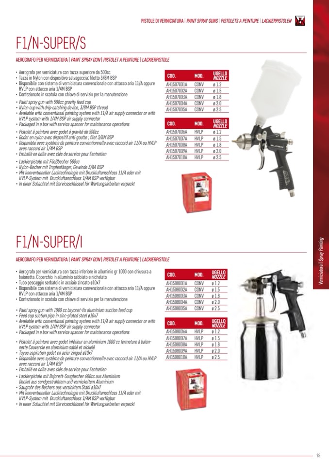 PISTOLE DI VERNICIATURA | PAINT SPRAY GUNS | PISTOLETS A PEINTURE | LACKIERPISTOLEN